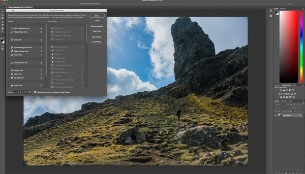 工具栏中的所有图标也都进行了重绘,比如移动工具就完全变了样,PS重度使用者第一次使用时新版可能会有点摸不着北。此外,用户还可以根据自己的需求对工具栏进行自定义调整,一些不用的工具可以对其进行隐藏。