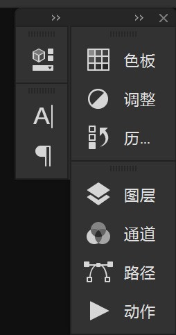 可以通过点击菜单栏里的”窗口按钮实现添加和减少,打上对勾后即可在右边的控制面板区域内展示。