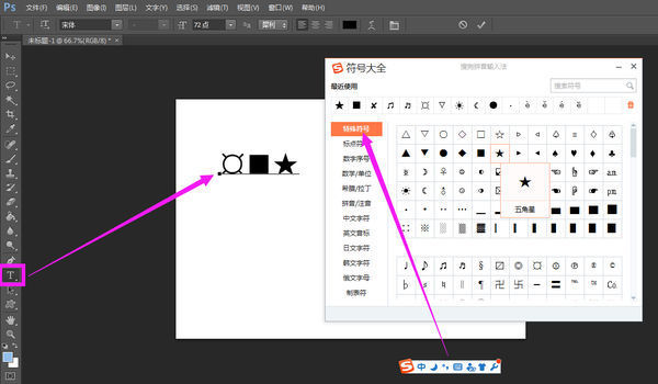 打开“符号大全”面板,点击需要的特殊的符号,就可以在画布上看到了。