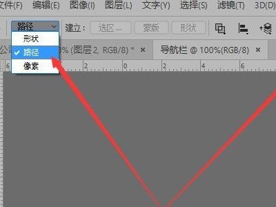 4、在选项栏中选择‘路径’工具模式。设置半径为‘50’像素。