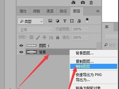 7、接着鼠标右击’背景图层‘,在弹出的快捷菜单中单击【删除图层】。