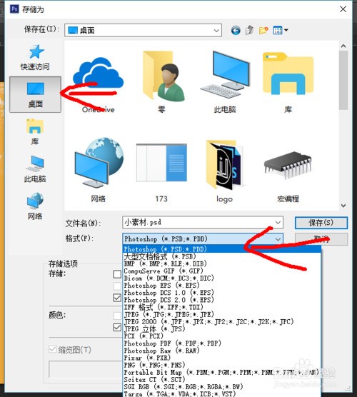 然后选择要保存的位置,打上文件名,选择保存格式psd,点击保存。