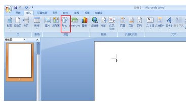 1.以一个空白的Word文档为例,打开后,我们可以先点击“插入”,看到有个选择“形状”。