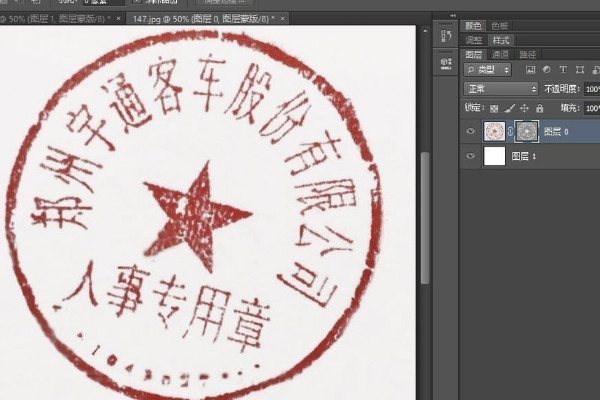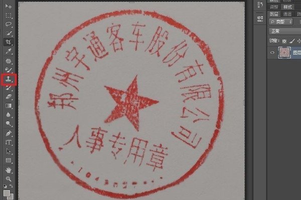 3.使用图章工具删除黑色字体!同时,对印章的红色部分进行修复,如下图。