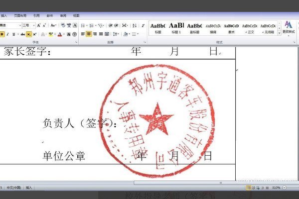 8.打开需要盖章的文字,添加图片,她卫倍未设置浮动在文字下方,调整印章的大小、位置、颜色和透明度。