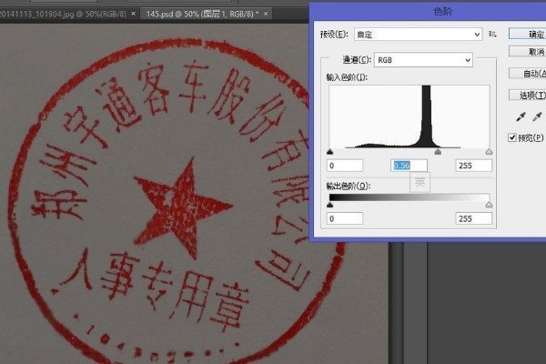 4.使用快捷键ctrl+l,使用色阶工具将红色部加深,如下图。