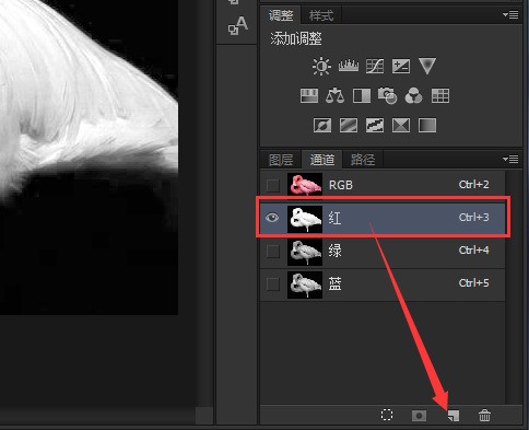 二、打开后,进入“通360问答道”面板,观察哪一个通道图片内容和底色反差最大,就把这个通道拖到新建按钮上复制一个通道。