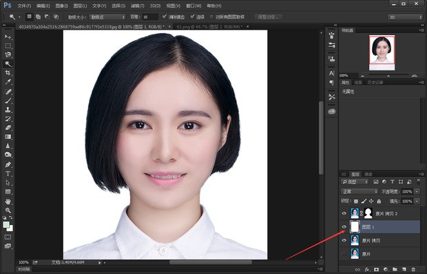 6、新建一个图层,填充白色当背景色,并把图层放置在人像下面。