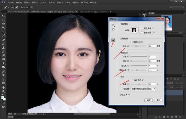5、调整半径,净化颜色等参数,达到把背景色隐去的效果。
