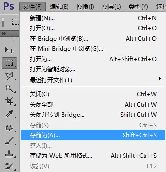 1、执行菜单栏“文件>存储为”;