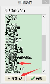在“增加动作”界面中选择“证件照排版”然后点击“增加”。