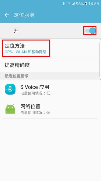 .点击定位方法选择定位方法,可选择【GPS、WLAN和移动网络】【WLAN和移动网络】【仅限GPS】