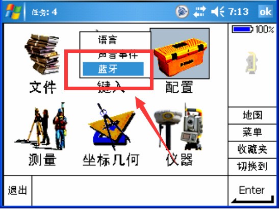 6、界面中: Turn on Blue Tooth是打开蓝牙,我们使用蓝牙必须选中此项Make this device discover to other devices使别的蓝牙设备能够发现本手簿,此项可选可不选,点击下面的Device (设备)选项。