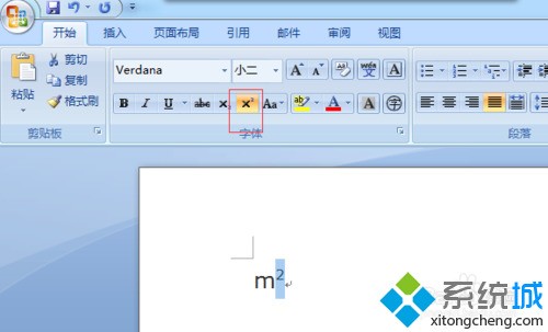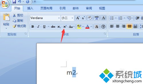 2、然后选是“2”,在菜单选项上“开始”里选择右上标的选项;
