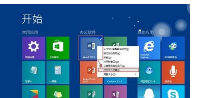 这时候打开“开始”屏幕,找到“Word 2013”图标,然后右击,选择“打开文件位置”。