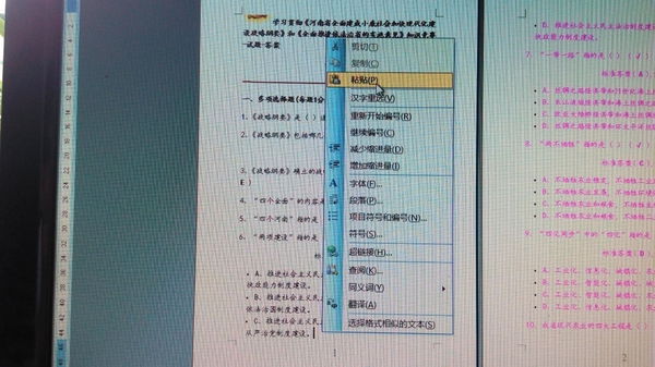 2、把鼠标指针移动到第1页的末尾(或者第3页的开始),点击右键,选择“粘贴”,或者用快捷键Ctrl+V。
