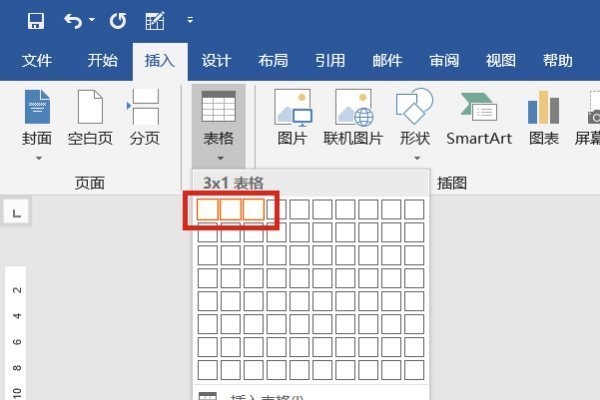 5.插入一个3X1的表格,如下图红框所示;