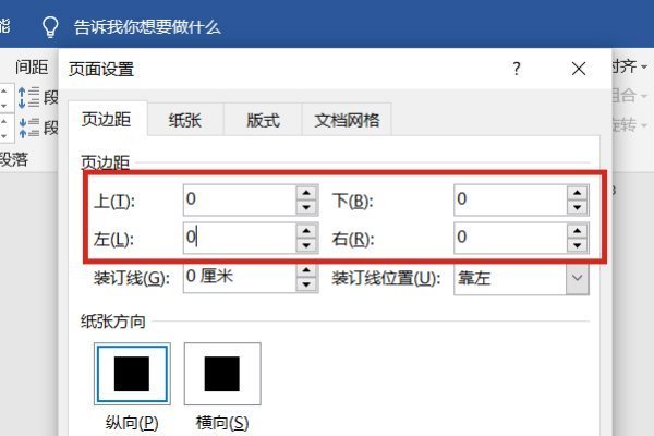3.将页边距的上下左右都调整为0,这样子整个页面都会在编辑范围内,变成了一张完整的A4纸,如下图红框所示;