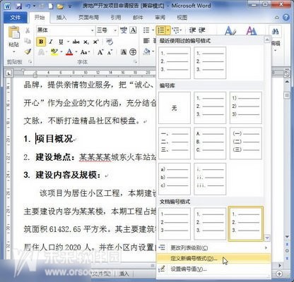 在office 2010的Word中定义新编号格式的步骤如下所述: