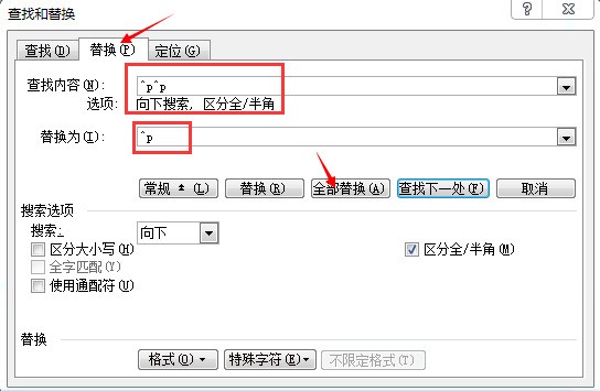 那后面再跟一个回车呢?在不使用通配符时,回车标记是^P,使用了通配符就变成^13了,所以我们的查找内容就变成了[A-D]^13,这样就能找到所有后面跟有回车的ABCD。