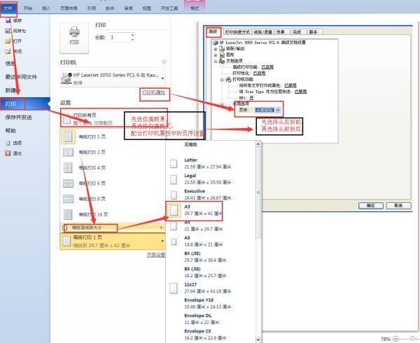 4、然后,完成上述步骤后,切换到“纸张”选项卡,选择“A3”作为纸张大小,然后确认,如下图所示。