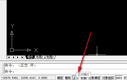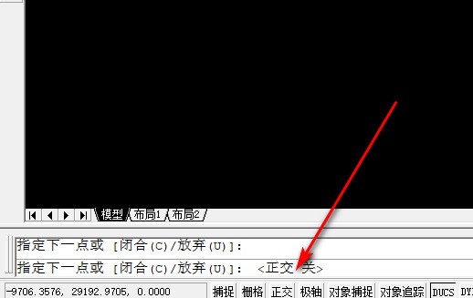 4、然后,关闭正交,可以看到已经显示正交关。如下图所示,然后进入下一步。
