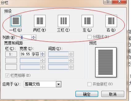 2、在分栏的对话框中,选择所需要的分栏,如果需要中间有装订线,则在”分隔线“前的小框打上勾,这样,文档分成两栏且中间有装订线。