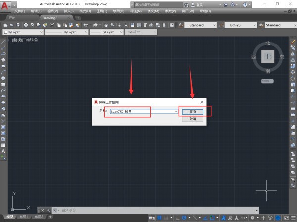 6、将当前工作空间保存为AutoCAD 经典,这里需手动输入”AutoCAD 经典”,并点击保存