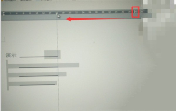 五、左边对齐后在借助右边的标尺来裁剪,选中要裁剪的下划线,鼠标按住标尺往左边拖,下划线需要留多长,标尺就留在什么位置,这时可以看到虚线往右的下换线都被裁掉。