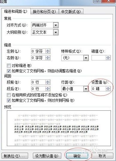 8.将行距设成最小值0,确定。尾注连续分隔符的方法同上。