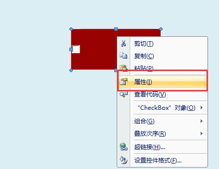 三、这里是删除了复选框内的文字,然后再次右键点击复选框,菜单内点击“属性”。
