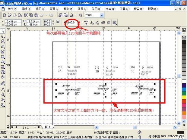 操作如下:就是将需要翻转的文字一次全部选中,然后在一个旋转框里输入180这个数字,再回车确定,就可以一次翻转了。只是这样一个版面要操作两次,因为这个腰牌的版面内容是不停变换的... 操作如下:就是将需要翻转的文字一次全部选中,然后在一个旋转框里输入180这个数字,再回车确定,就可以一次翻转了。只是这样一个版面要操作两次,因为这个腰牌的版面内容是不停变换的,这样的话就会很繁琐。所以我在想有没有什么更快捷的操作方法,比如快捷键什么的,选中需要翻转的文字后,按下按钮立马就能翻转向下了?示意图如下,再次对定做的厂家表示不解,分明是在制造打印的麻烦,原先根本不是这样的,比这个省事的多!
