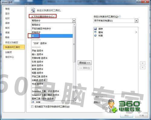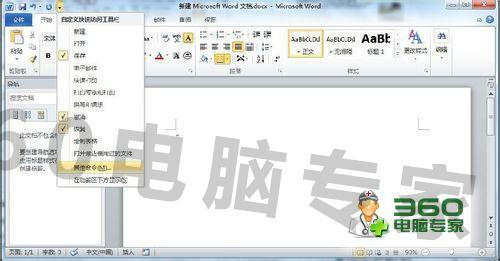 1. 在左上角单击银传控达其“自定义快速访问工具”按钮,打开的下拉菜单点击“其他命令”项