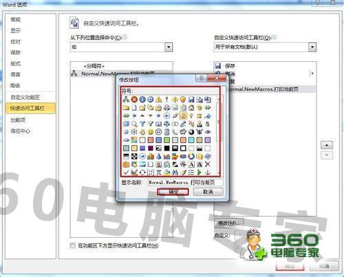 5. 弹出修改按钮对话框,选择医没停整市重促七任言一个喜欢的图标,单击“确定”,返回Word选项窗口,再次单击“确定”