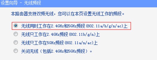 5、弹出无线频段选择界面;