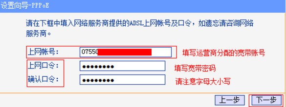4、输入从运营商那里获得上网账号、密码;