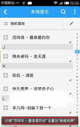 3、像小编选择为来电铃声后就出现提示已将“范玮琪-最亲爱的你”设置为“来电铃声”了