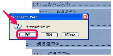 6、对每一级别的目录进行设置修改后,点击确定后,会弹出替换的提示框,点击确定,就把默认的word目录发说提零室来格式替换成自己设置的了。