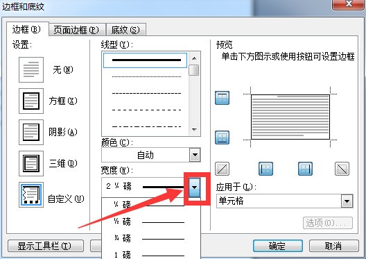选中需要加粗的横线的所属单元格,再选边框设置工具,看那横线是在所属单元格的上方,还是下方,或是左右,如果是在上方,就选择上划线设置工具,在下方就选择下划线设置工具,就在:格式边框和底纹边框 ,横线的粗线及样式可根据你自己的需要选择相应的线型及大小