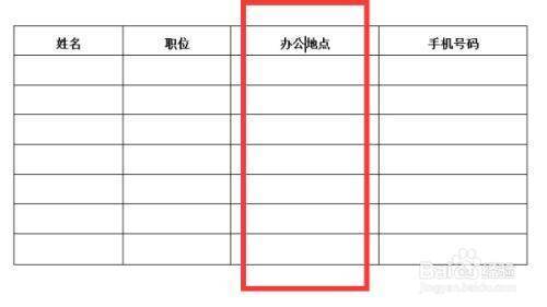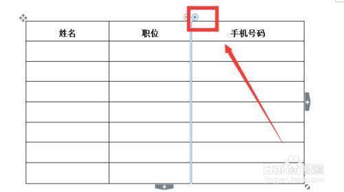 如果你要在职位后面添一列办公地点,鼠标点在职位和手机号码的中间,出现一个加号和一个减号,这是增减列数的地方,点击加号,就出现了一列。