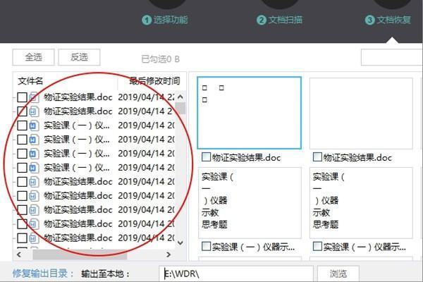 6、接着,完成上述步骤后,扫描完成,将出现很多可恢复的文档,请选择要恢复的文档,如下图所示,然后进入下一步。