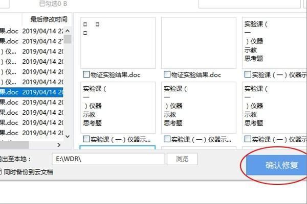 7、最后,完成上述步骤后,选择了丢失的文档,单击“确认修复”按钮以还原文档,如下图所示。这样,问题就解决了。