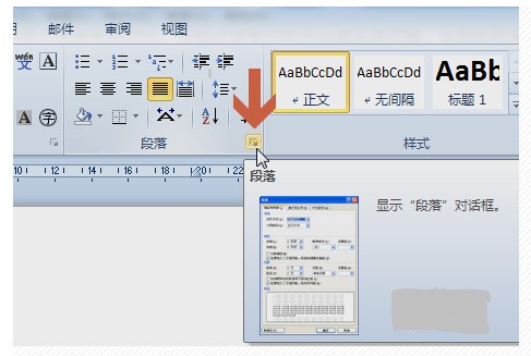 3. 如果感觉拖动右缩进滑块不容易精确掌握位置,可以点击图中所示的word开始选项卡中的段落按钮。