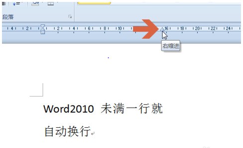 Word中未到行尾就自动换行, 基本都是因为误调整了右缩进引起的。下图箭头所指的标尺处的小三角就是调整Word右缩进的滑块。这个小三角在标尺的哪个位置,Word中的文字就会在哪里自动换到下一行。