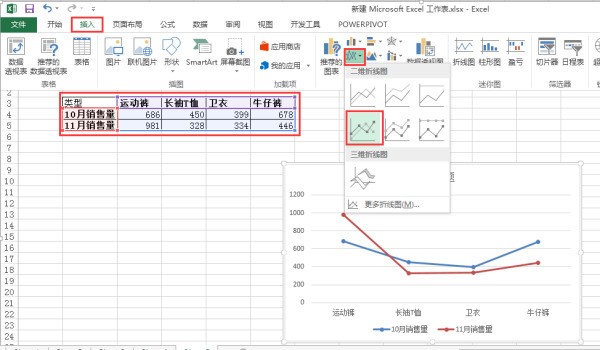 你的问题里有错别字,猜测一下你要问的是怎么把excel的数据表做成折线图,按照下面的方法。