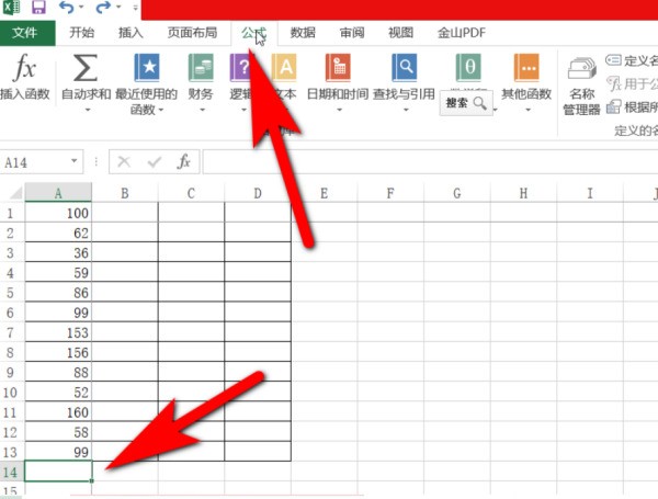 3、鼠标点击列下方的空白单元格,将求来自和值放入单元格,然后我们点击菜单栏中的公式设置。