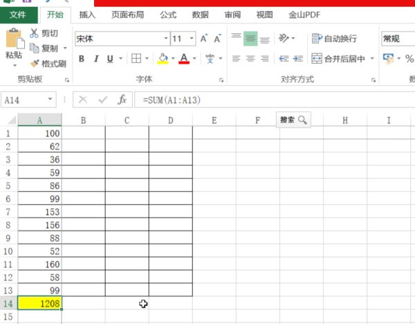 6、最后单击键盘上的回车键即可得出总和,这样Excel中的一列数据的求和操作就完成了。