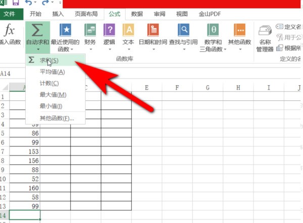 4、在公式设置栏下选择自动好宏求和,鼠标单击打开然后选择求和选项。