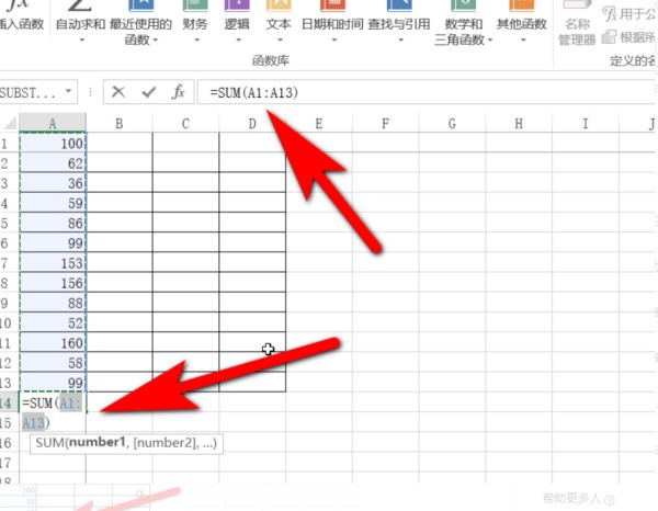 5、这时可以态袜慧看到Excel表格已经自动选取了一列的数据,注:也可在函数编辑帆答栏内输入=SUM(A:A)公式,求和区域根据需求选定。