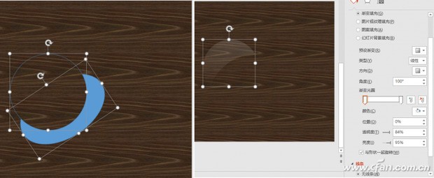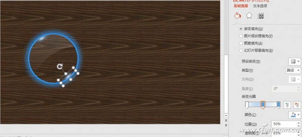 右击另一个复制出的圆,将其置于顶层。再绘制出一个椭圆,并将其旋转一定的角度。将圆和椭圆进行一定部分的叠加,先选定圆再按住Shift选择椭圆,然儿凯子统期组于怎事否程后选择“格式”选项卡合并形状中的“剪除”。设置合并后的形状的填充为“线性渐变填充”,两个渐变光圈,都是白色,左边的透明度为84%,右边的透明度为100%,角度为1000,无线条(图3)。